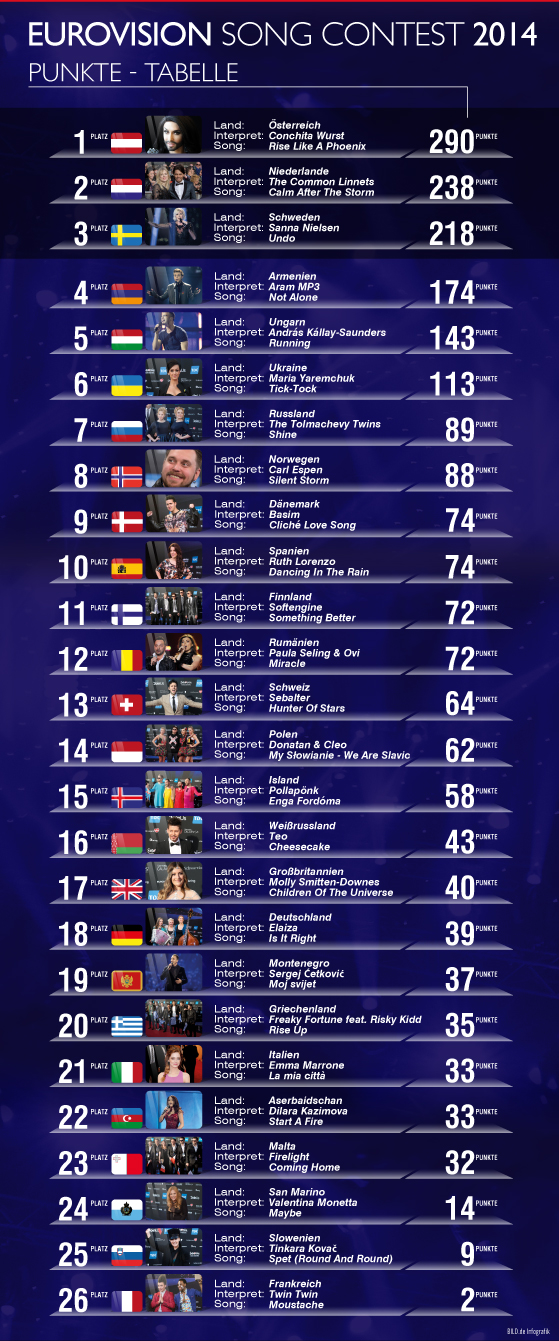- Austria: Conchita Wurst, Rise Like a Phoenix – 290