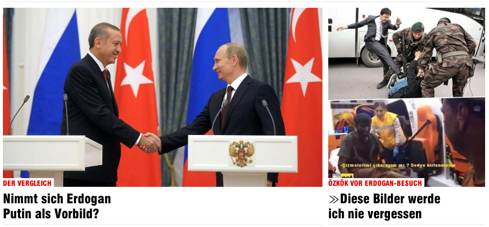 ALMANYA’NIN ÖNDE GELEN MEDYA KURULUŞLARINDAN BİLD’İN İNTERNET SİTESİ BAŞBAKAN RECEP TAYYİP ERDOĞAN’I YARIN ÇIKACAĞI ALMANYA GEZİSİ ÖNCESİ “HOŞGELDİN” MANŞETİNİ BÖYLE ATTI. BİLD, ERDOĞAN’I RUSYA DEVLET BAŞKANI PUTİN’LE KARŞILAŞTIRAN BİR ANALİZİ MANŞET YAPTI. MANŞETİN YANINDA DA ERTUĞRUL ÖZKÖK’ÜN YORUMLARI YER ALDI.