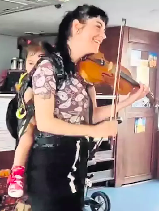 Sokak müzisyeni genç bir kadın, çocuğunu sırtına, kemanını eline almış İzmir’de bir feribotta ‘Gangsta’s Paradise’ adlı eseri çalıyor…