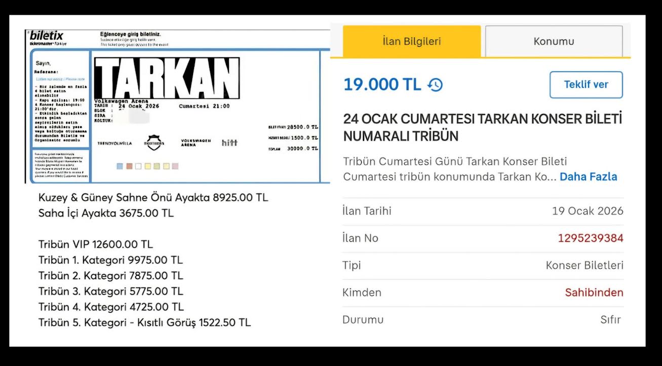 Tarihi 19 Ocak 2026, numarası ise 1295239384 olan ilanda, 24 Ocak’taki konser için 19 bin TL fiyattan satışa çıkarılan bilet için teklif bekleniyordu.