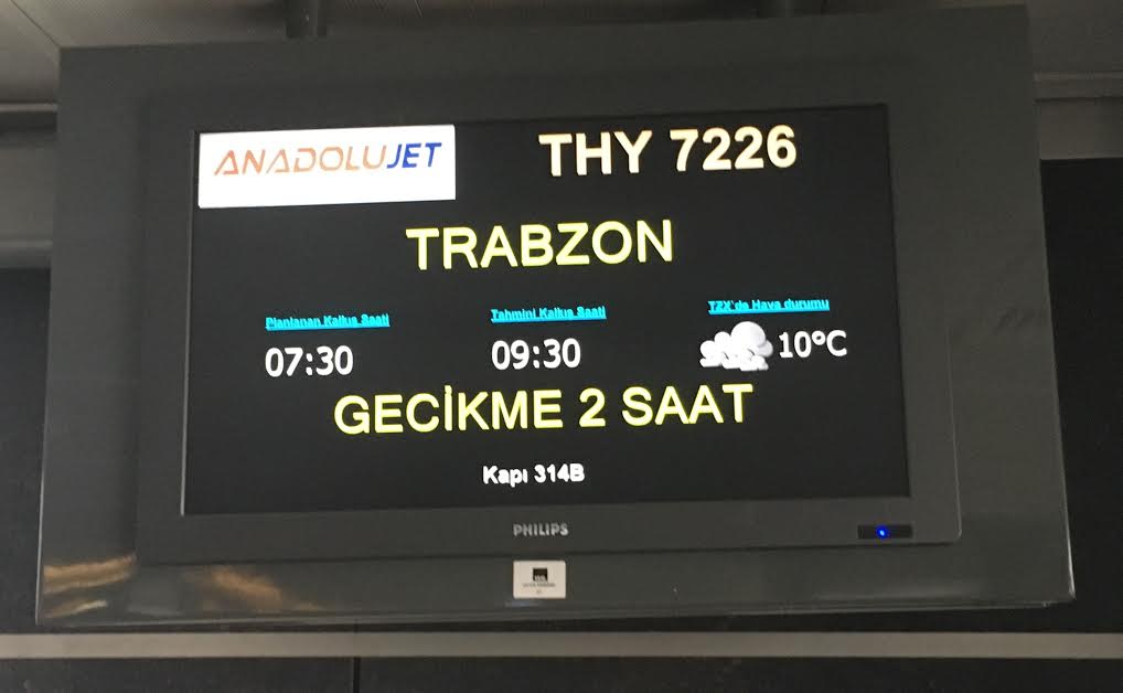 1.5 saat burada bekledikten sonra Trabzon’a başka bir uçakla gideceğimize, eski uçaktaki bavulların yenisine transferinden sonra uçuşun gerçekleşeceğine dair bilgi geldi.