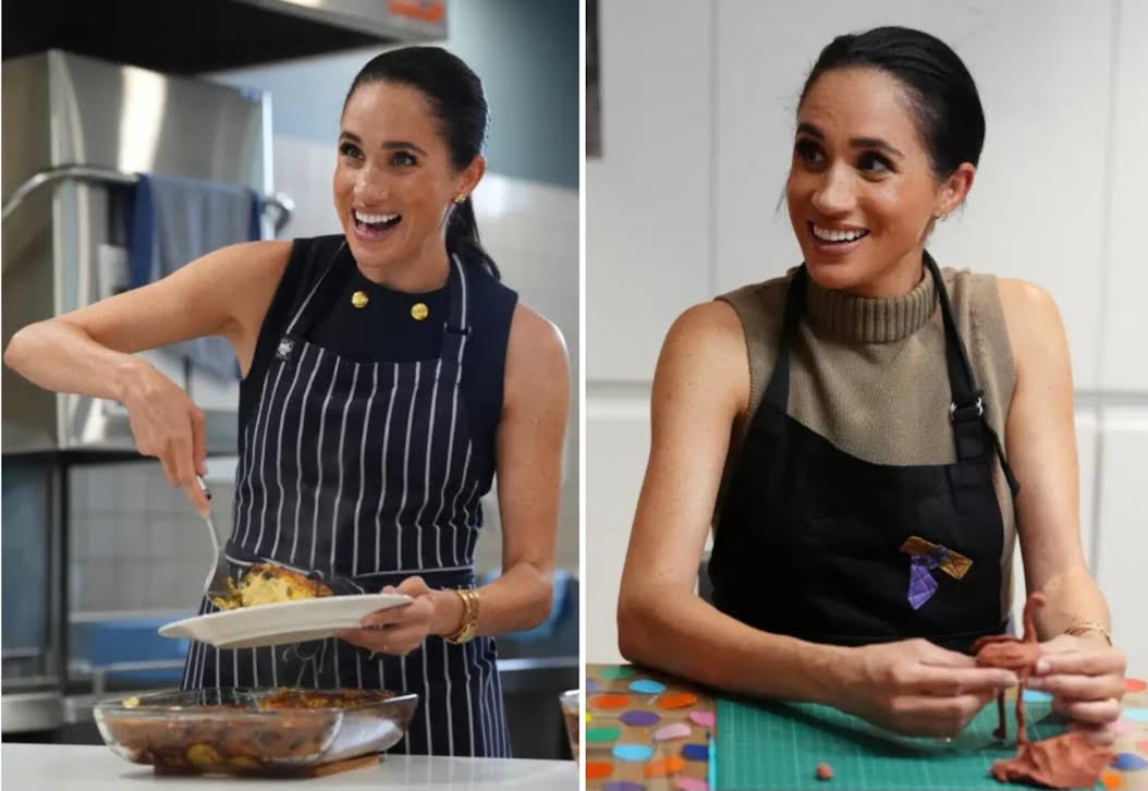Evsiz kadınlar barınağını da ziyaret eden Meghan Markle, merhum kayınvalidesinin izinden giderek, burada önlük takıp insanlara yemek dağıttı.